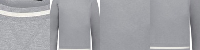 - Ribbed-knit crew neck collar with V-stitching at neckline